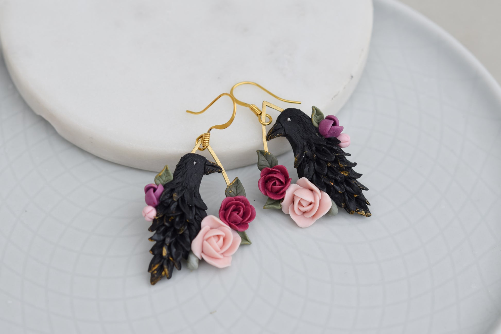 Cute halloween raven earrings handmade from polymer clay, perfect as a cute halloween accesory or a gift. Each piece is carefully hand-sculpted, making every pair truly one of a kind. Lightweight and comfortable for everyday wear.