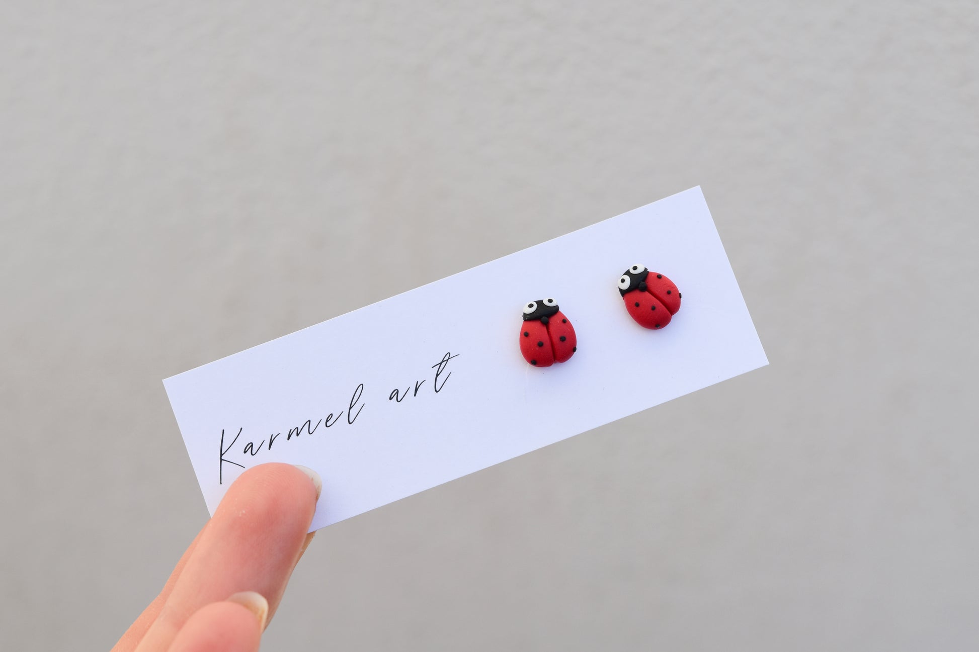 Cute ladybug studs handmade from polymer clay, perfect for all the plant lovers! Each piece is carefully hand-sculpted, making every pair truly one of a kind. Lightweight and comfortable for everyday wear.