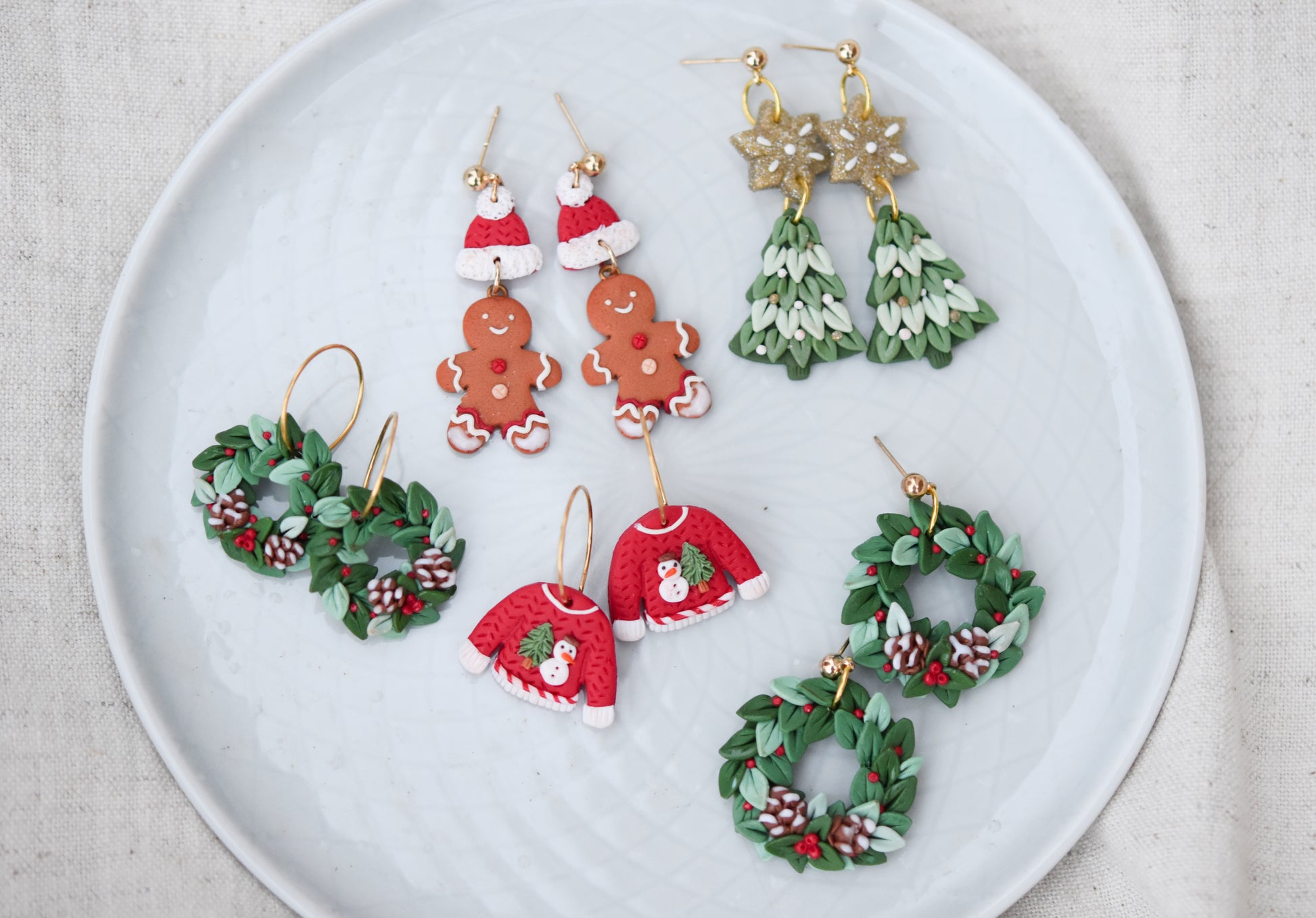Handmade Christmas dangle earrings handsculpted from polymer clay, perfect as a cute Christmas accesory or a gift. Each piece is carefully hand-sculpted, making every pair truly one of a kind. Lightweight and comfortable for everyday wear.