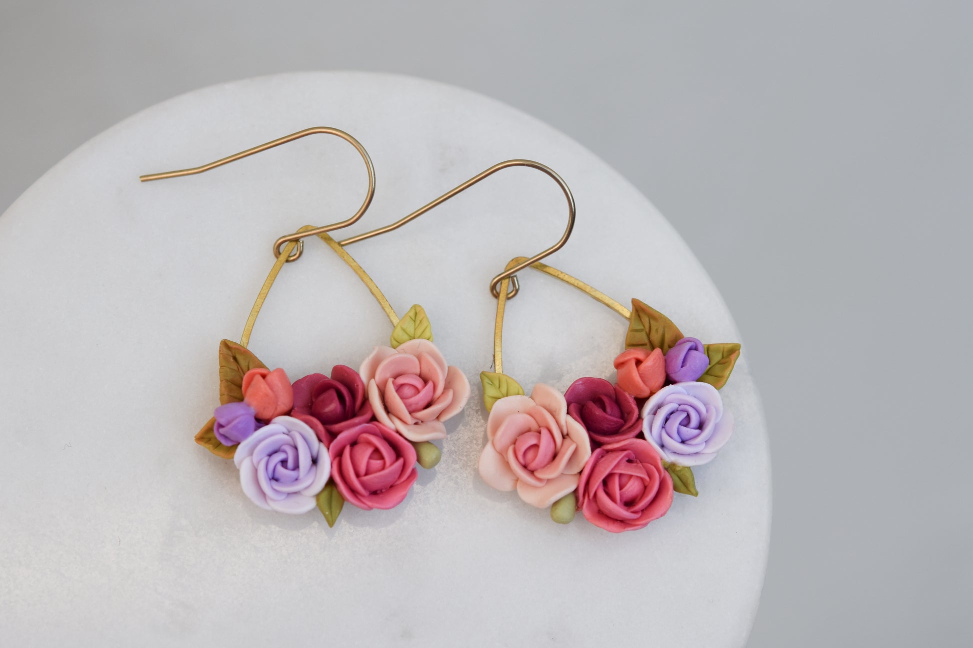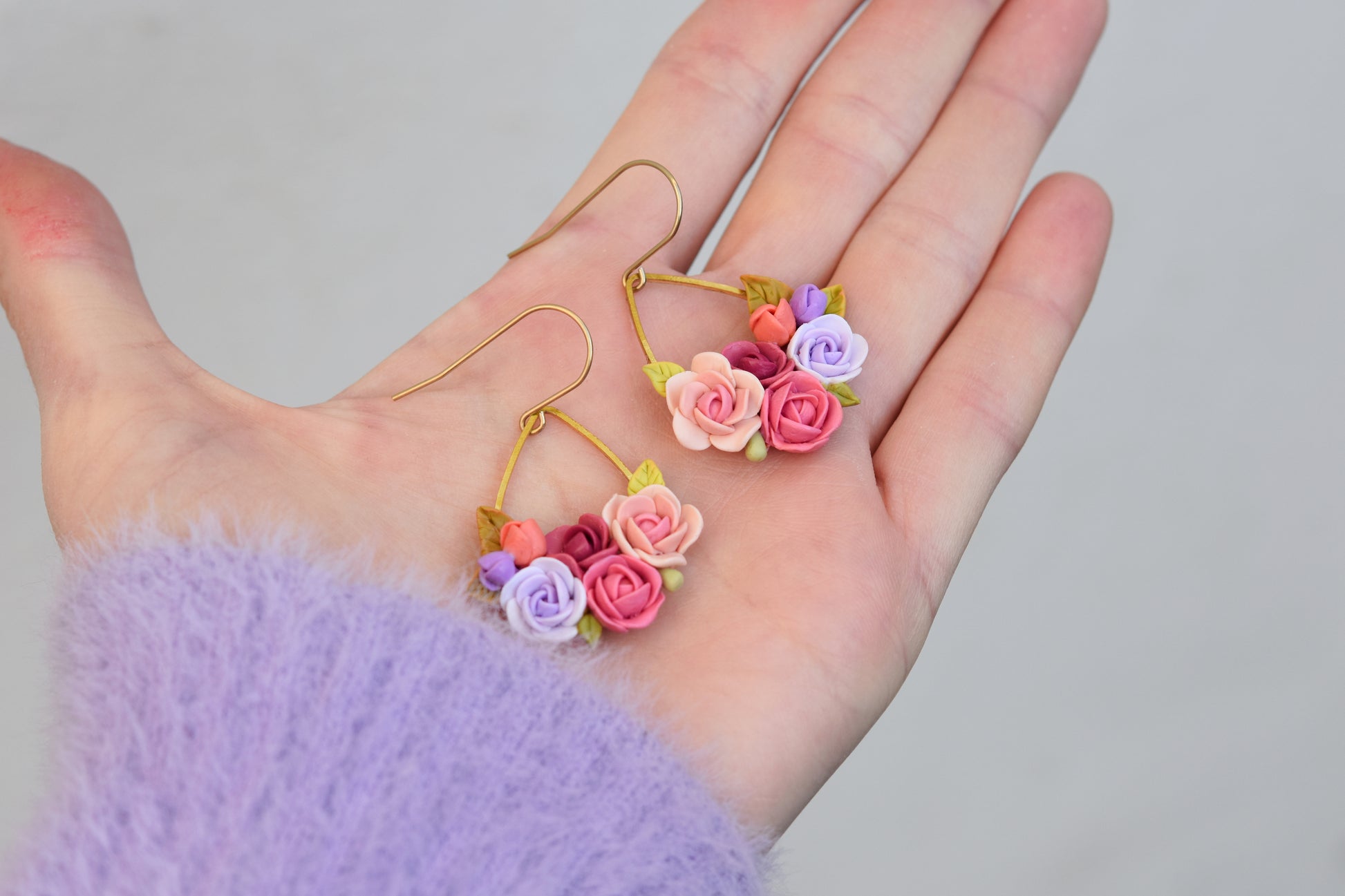 Delicate floral earrings handmade from polymer clay, inspired by soft garden blooms. Each flower is carefully hand-sculpted, making every pair truly one of a kind. Lightweight and comfortable for everyday wear.