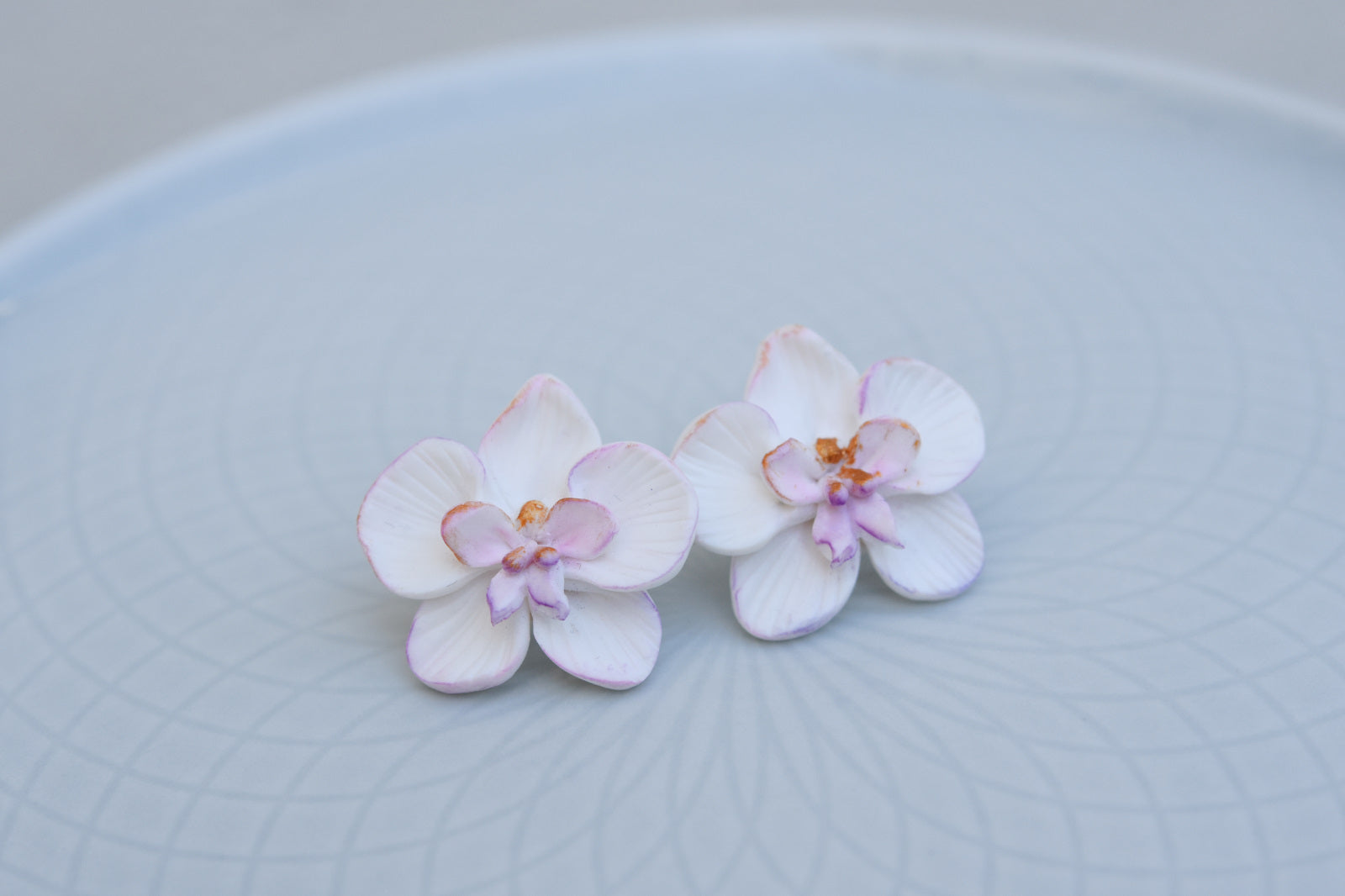 Delicate orchid earrings handmade from polymer clay. Each flower is carefully hand-sculpted, making every pair truly one of a kind. Lightweight and comfortable for everyday wear.