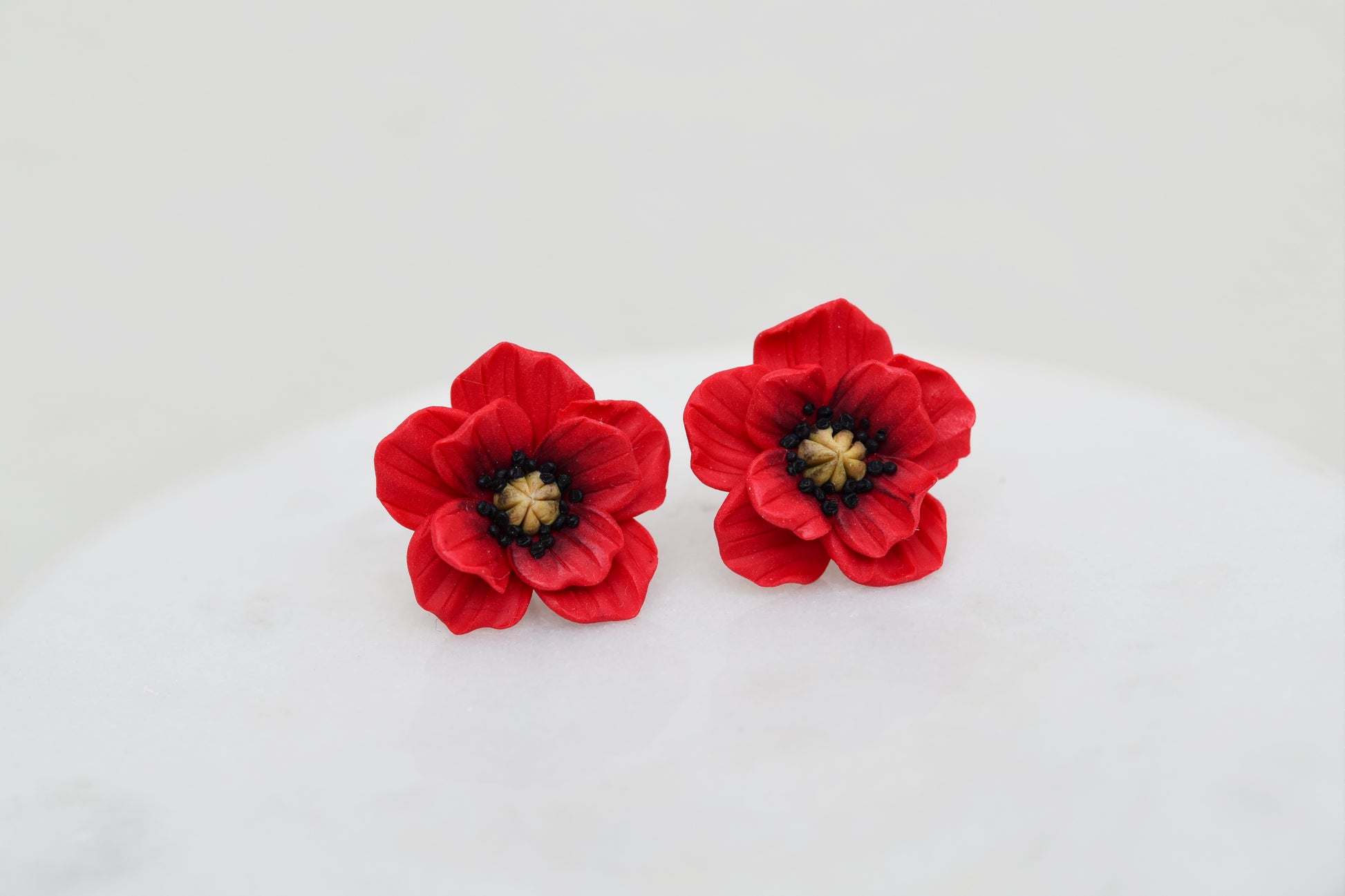 Delicate poppy earrings handmade from polymer clay. Each petal is carefully hand-sculpted, making every pair truly one of a kind. Lightweight and comfortable for everyday wear.